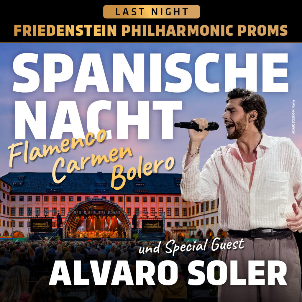 Viva España! Die Thüringen Philharmonie feiert die letzte Nacht auf dem Friedenstein! Ein Sommerabend voller Musik, Eleganz und mediterraner Leichtigkeit. Im atmosphärischen Schlosshof von Schloss Friedenstein Gotha erwartet Sie ein Fest der spanischen Klänge – facettenreich, rhythmisch und mitreißend.