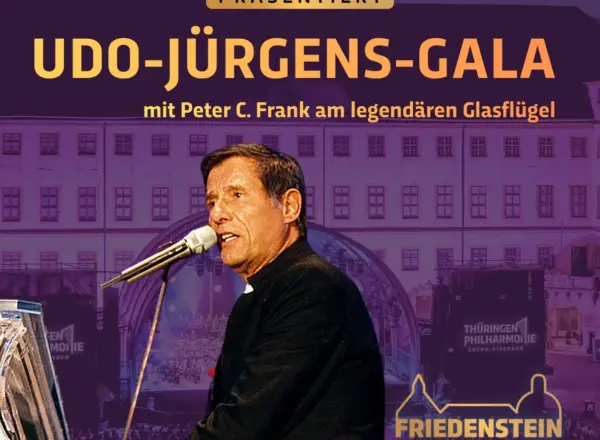 Programm Unsere Veranstaltungen zum Friedenstein Open Air 2026: Buchen Sie jetzt Ihr Ticket! 14 Aug. 2026 Thüringen Philharmonie trifft … Die Prinzen – Symphonica 2026 22 Aug. 2026 Giovanni Zarrella – Una Notte Sinfonica 23 Aug. 2026 Thüringen Philharmonie präsentiert Sounds of Hollywood 28 Aug. 2026 Thüringen Philharmonie präsentiert … Udo-Jürgens-Gala BUCHEN SIE IHR TICKET BEI: Ticketshop Thüringen Eventim VVK-Stellen vor Ort